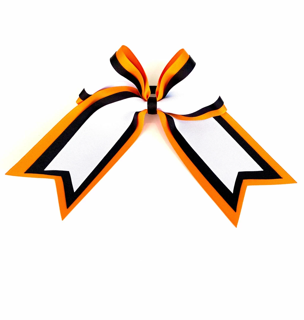 Nooga Bows Triple Ribbon Layered Hair Bow – Orange, Black, White